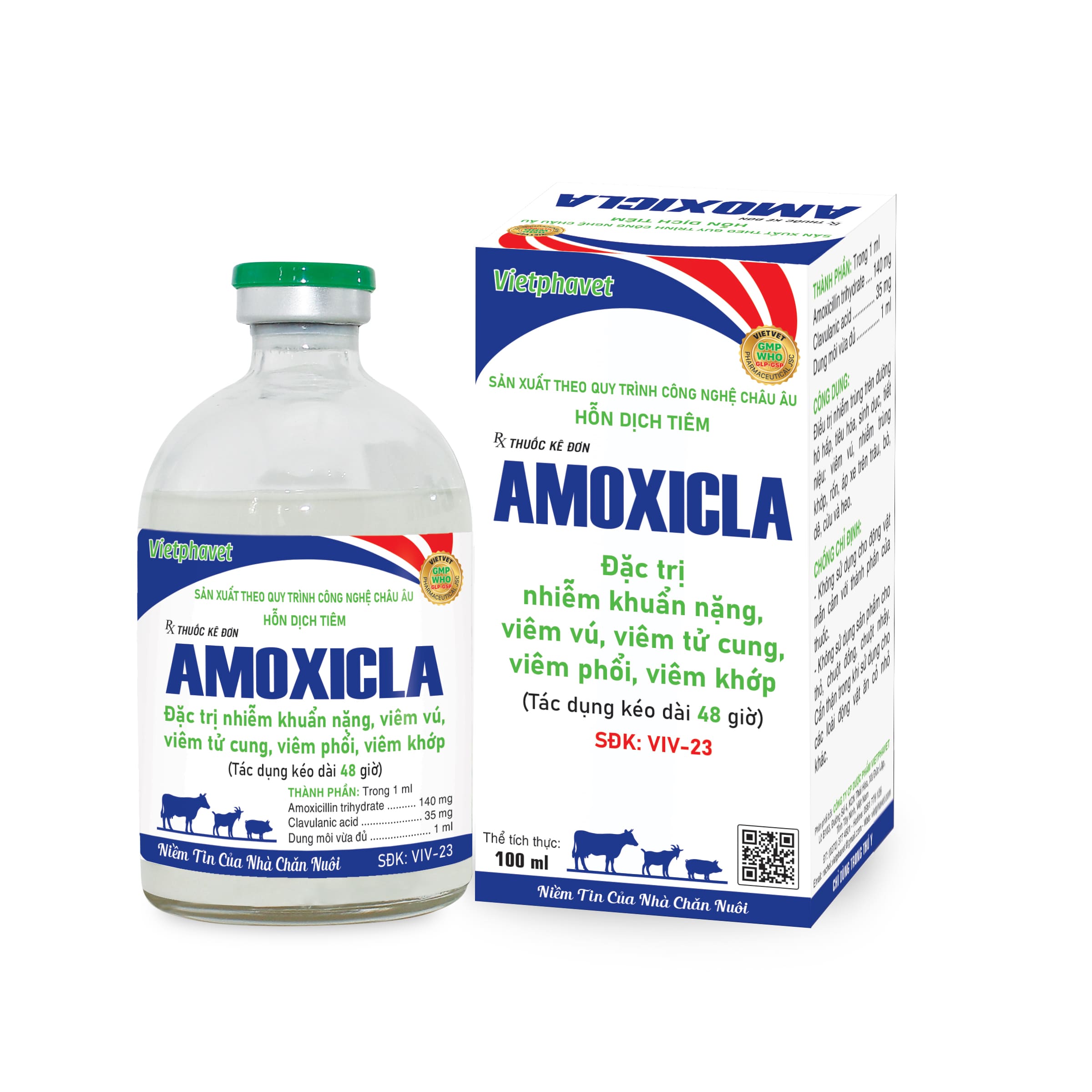 Điều trị nhiễm trùng trên đường hô hấp, tiêu hóa, sinh dục, tiết niệu: viêm vú, nhiễm trùng khớp, rốn, áp xe trên trâu, bò, dê, cừu và heo.